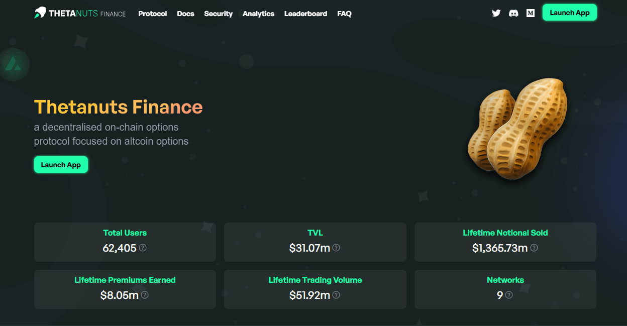 Thetanuts Finance is a decentralized, multi-chain options protocol that specializes in altcoin options trading. It enables users to engage in structured options strategies through its innovative v3 architecture, which includes Basic Vaults for selling out-of-the-money European options, a Lending Market for earning interest on LP tokens, and an Automated Market Maker (AMM) for trading options positions. This design allows users to generate yield from option premiums, lending interest, and trading fees, all while simplifying the complexities of options trading.